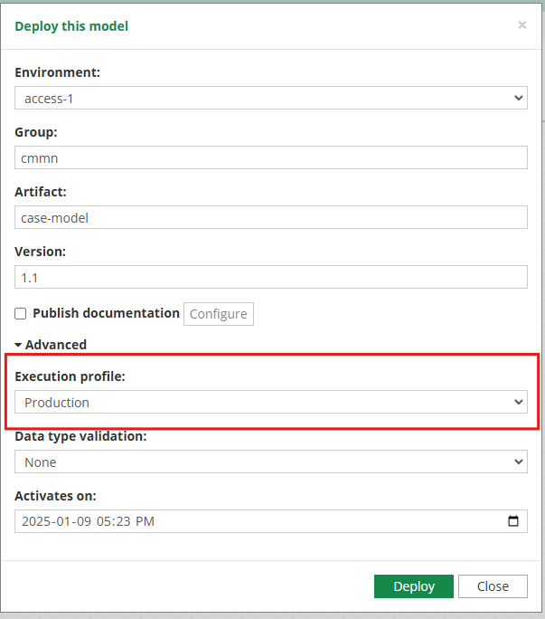 The dialog asks you to choose the Environment where you want to deploy your case: