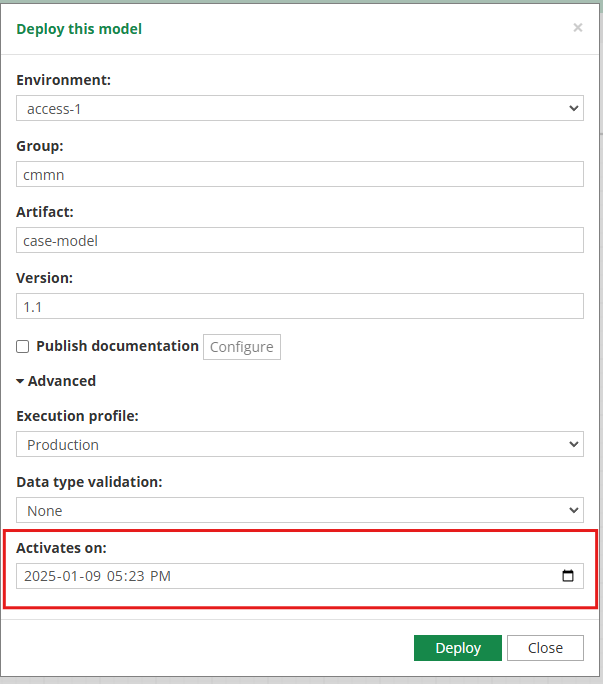 The Deploy action on the Execution ribbon allows for the publication of the case as a service in the automation suite.