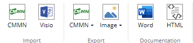 Actions on this ribbon support importing process models into the workspace and exporting them to the desktop.