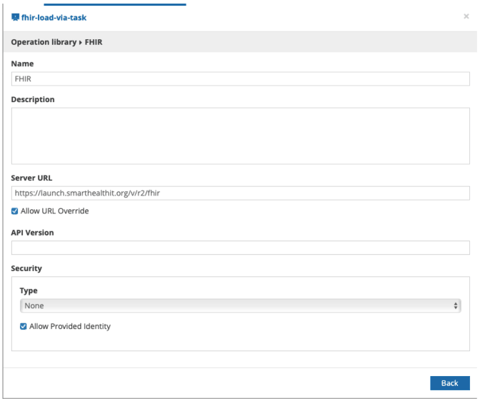 Allow URL Override - this instructs the service execution to use FHIR server given during the launch of the application. This means that the Server URL given here is optional.