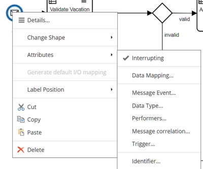 Right-clicking on a sequence flow brings up the following menu:
